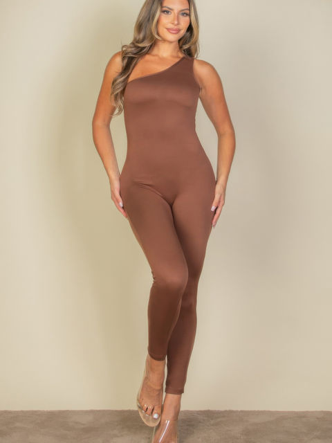 The Solid Color One Shoulder Jumpsuit combines high fashion with everyday comfort. Its flattering fit and modern one-shoulder design will have you feeling confident and stylish for any occasion. With a variety of stunning color options, this jumpsuit is the ultimate wardrobe staple for effortless elegance.